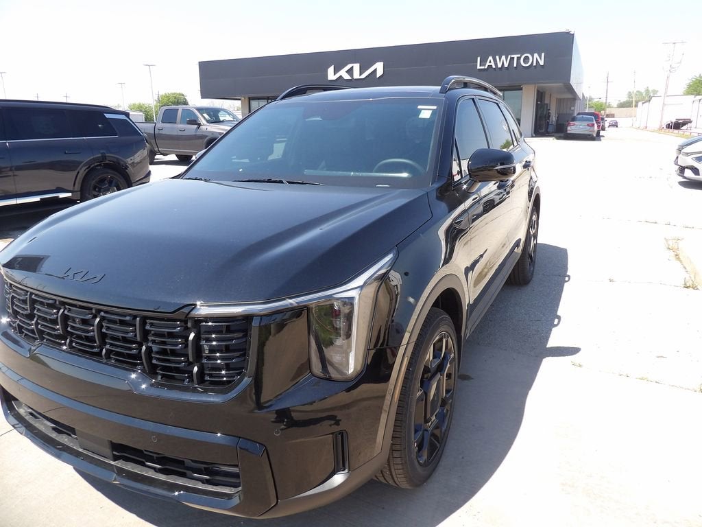 2026 Kia Sorento X-Line SX Prestige 4D Sport Utility AWD Ebony Black 2.5L I4 DGI Turbocharged DOHC 16V LEV3-SULEV30 281hp Bluetooth® WIRELESS / HANDS FREE, BACKUP CAMERA, AWD.Lawton Kia is your Oklahoma Kia dealership to buy the latest Kia cars and SUVs as well as for Kia auto repair. Our Oklahoma Kia dealer stocks a wide variety of new Kia cars & Kia SUVs in all models including the Kia Sorento, EV6, Forte, K5, Rio, Stinger, Sportage, Soul, Nexo, Sorento, Seltos, and Telluride. Also included with every purchase of a new Kia car or Kia SUV, is the Lawton Kia Advantage which provides Engines for Life, oil changes for 3 years (synthetic oil change requires upcharge), window tint, paint & fabric protection, Brake Plus, and complimentary service loaners. Lawton Kia also employs a number of Kia and ASE certified technicians to service any Kia, Chrysler, Jeep, Dodge, Ram, Ford, Chevrolet, GMC, Toyota, Nissan, Honda, Hyundai, Mazda, Volkswagen, Mitsubishi, Subaru, or other make of automobile. No matter what make of automobile you have, or what your service need is (oil change, tire rotation, new tires, alignment, transmission flush, air conditioner concern, or whatever service you need) we've got you covered. Lawton Kia proudly sells Kia cars & Kia SUVs in Oklahoma and northwest Texas including Kia in Lawton, Kia in Wichita Falls, Kia in Burkburnett, Kia in Altus, Kia in Chickasha, Kia in Duncan, Kia in Elgin, Kia in Blanchard, Kia in Grandfield, Kia in Walters, Kia in Rush Springs, Kia in Norman, Kia in Moore, Kia in Oklahoma City (OKC), Kia in Yukon, Kia in Reno, Kia in Midwest City, Kia in Del City, Kia in Dallas, Kia in Fort Worth, and all the many areas in between. Please visit our Kia dealership in person to see just how many Kia advantages we provide or shop our Kia inventory at www.lawtonkia.com. We look forward to seeing you in a Kia.